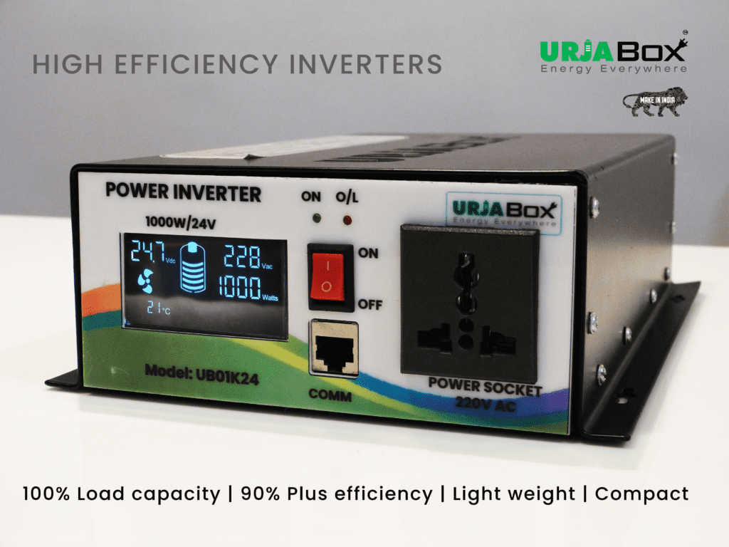 Urjabox Inverter is a pure sine wave high frequency inverter that delivers smooth and reliable power to your appliances and devices. It can handle 100% load capacity without any voltage fluctuations or overheating. It also has a soft start function that protects your equipment from damage caused by sudden power surges. Urjabox Inverter has a light weight, compact and robust design that makes it easy to install and operate. It also has a high efficiency of over 90%, which means it consumes less power and saves you money. Urjabox Inverter is a premium quality inverter that offers you the best performance and durability. Urjabox inverter supports lead-Acid batteries as well as Lithium-ion batteries.